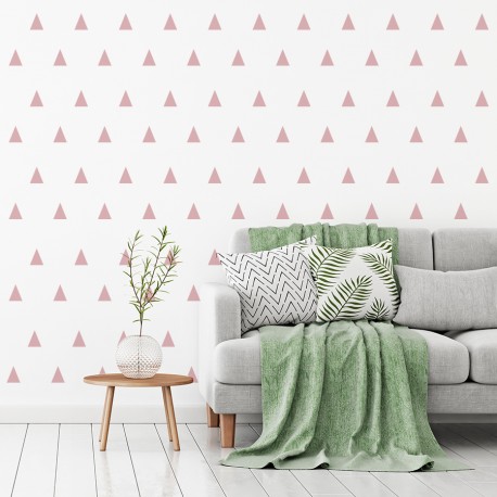 Blatt mit 160 selbstklebenden Dreiecken zum Anbringen an der Wand von 5,4 x 6,5 cm (Basis x Höhe) in verschiedenen Farben erhältlich. Mit einem Blech kann eine 4 x 2,5 m große Wand mit einer ähnlichen Zusammensetzung wie im Beispiel hergestellt werden. Kombinieren Sie mehrere Farben nach Ihren Wünschen und erzielen Sie sehr schöne Effekte.