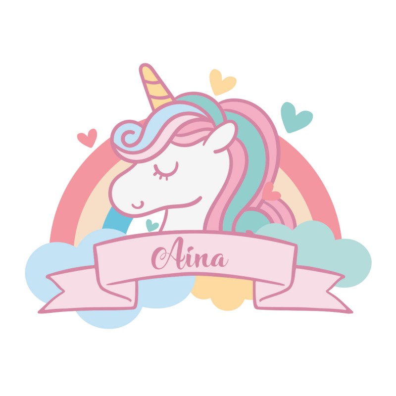 Vinyle décoratif personnalisable avec le nom que vous voulez, jolie licorne pour votre mur. Une touche gaie et amusante pour la chambre des petits.