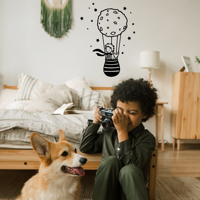 This beautiful illustration of the little prince will make the imagination of the smallest of the house fly. A simple and beautiful touch for the room that your children. This vinyl is for smooth interior walls, made of cut vinyl (without background) in matte finish.